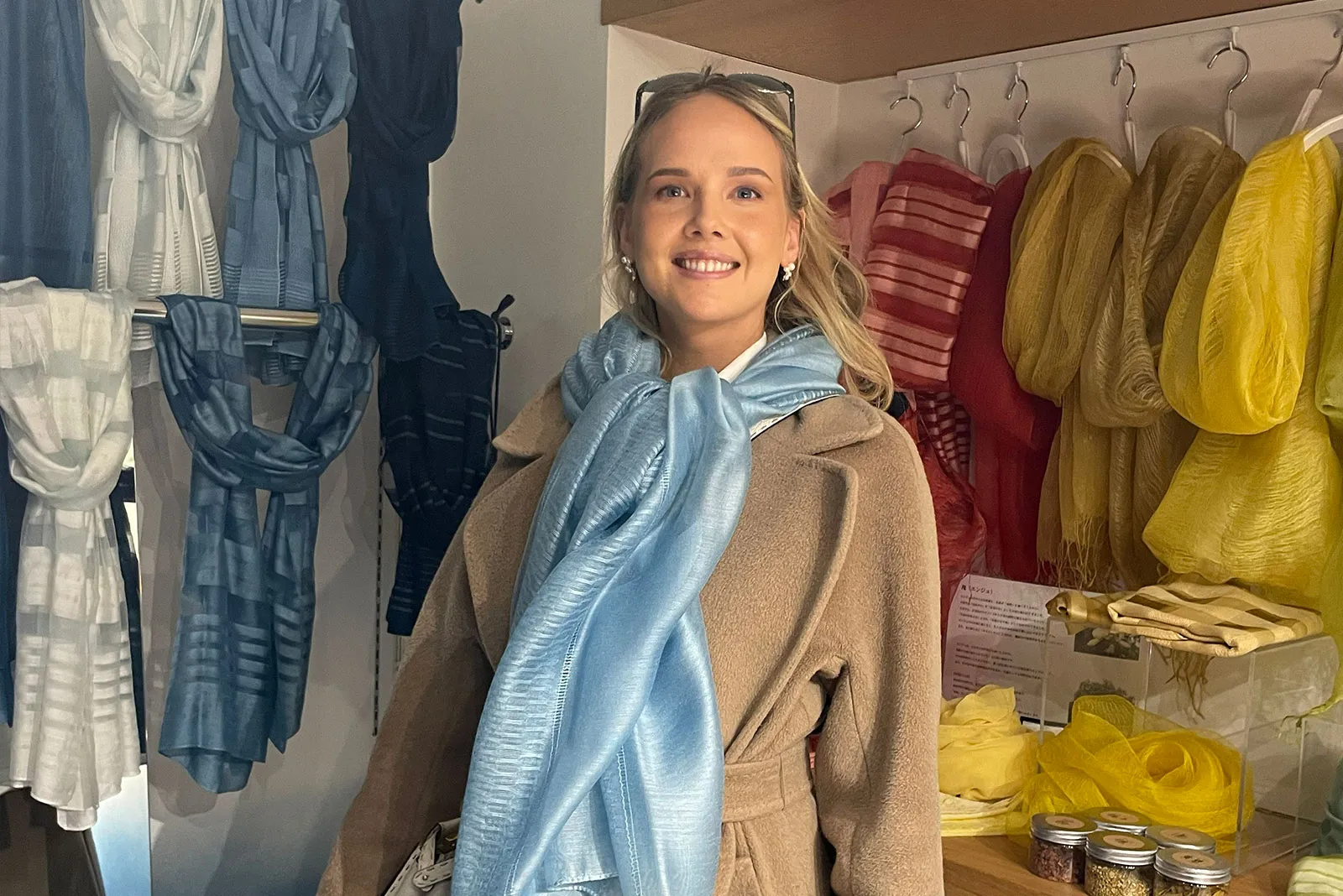 女性の藍染職人さんが丁寧に作品を説明して頂けました。ありがとうございました😊また伺いますね👍