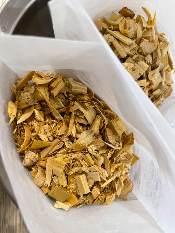 漆染めに使用しているのは、輪島塗の漆液採取後に残る、乾燥させた漆の木のチップ。