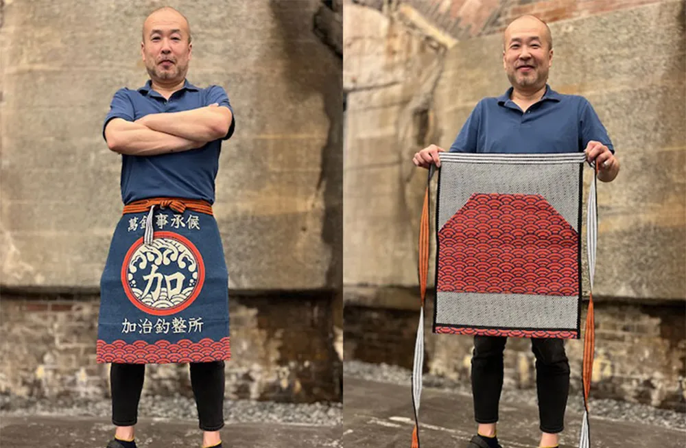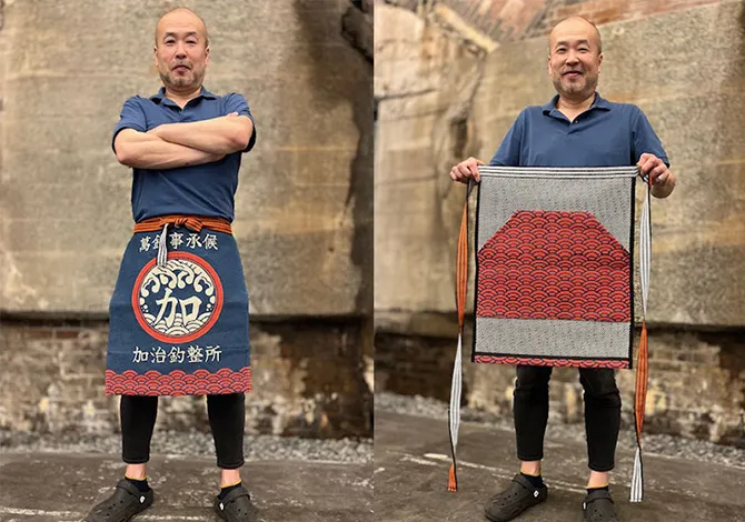 富山湾にて創業の「加治釣整所」様からご注文いただいた特注の刺子生地の前掛けです。